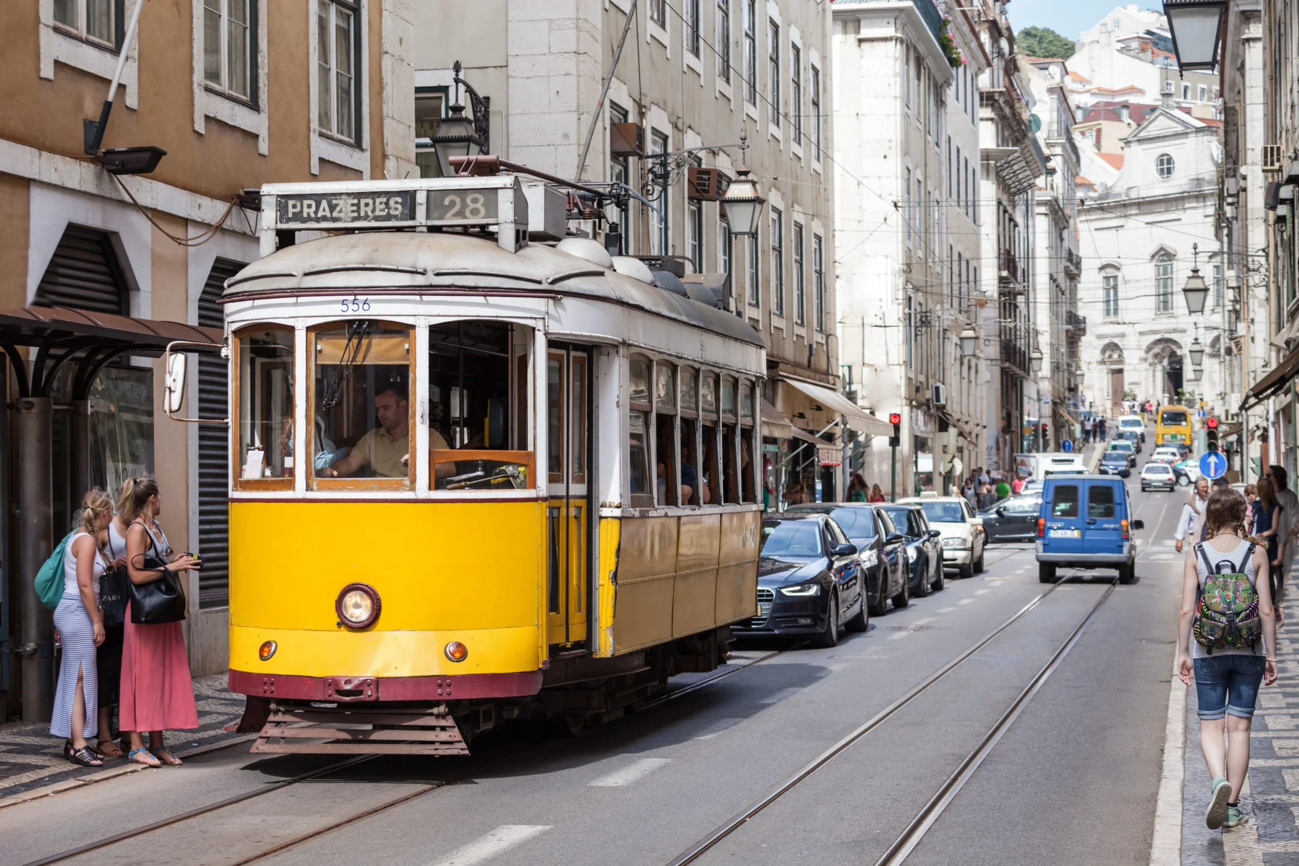 මධ්‍යම ලිස්බන්හි බෑවුම් සහිත කන්දක ඉහළට සහ පහළට යන Elevador da Glória ලෙස හැඳින්වෙන කහ සහ සුදු මෝටර් රථයේ සුන්බුන්වල දර්ශන දක්නට ලැබුණා.