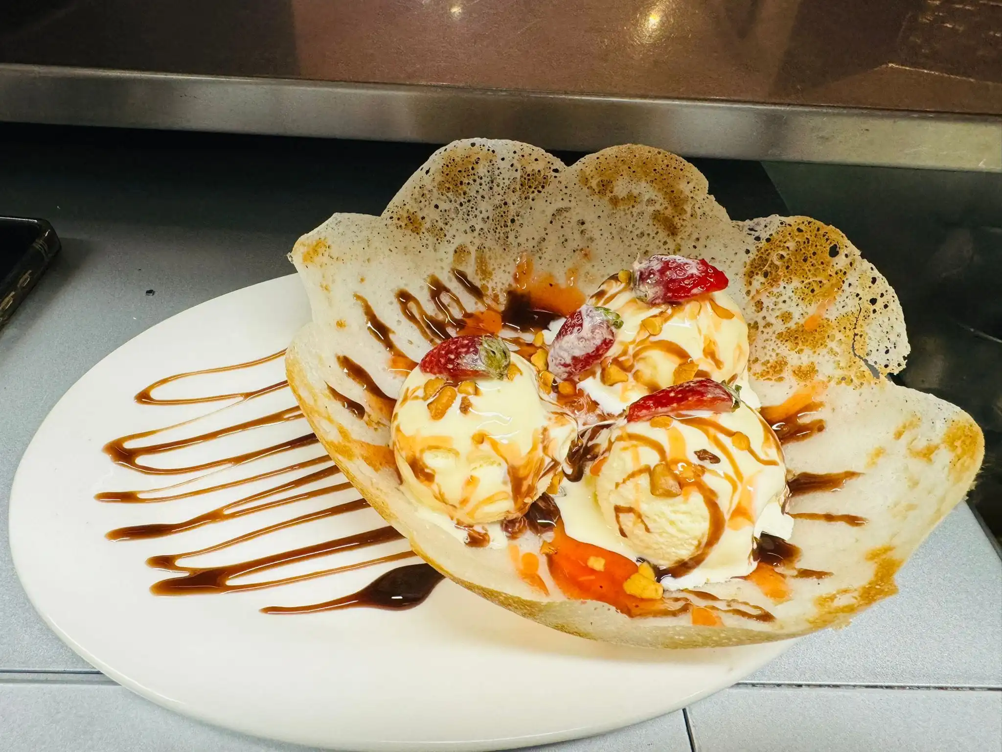 Desserts විදිහට වටලප්පන්, කිරි පැණි ආදිය වගේම Choc Hazelnut Hopper, Lotus Biscoff Hopper, Frozy Ice Cream Hopper, Sri Lankan Jaggery Hopper, Classic Choc Hopper වගේ Dessert Hoppers රස බලන්නත් පුළුවන්.