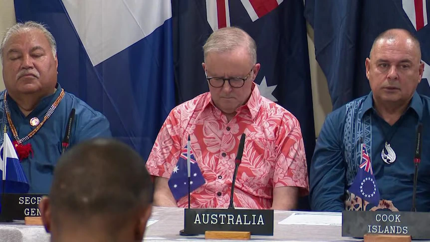අනෙකුත් සියලු දෙනා සමුළුවේ නිල, නිල් පැහැති කමිසය ඇඳ සිටින අතරතුර, රෝස පැහැති කමිසයක් ඇඳ ගෙන ගිය Anthony Albanese අපහසුතාවයට පත් වුණා. ඔහු මෙම අවස්ථාවට මුහුණ දුන්නේ පැසිෆික් නායකයින් එක් වූ තීරණාත්මක සමුළුවකදී වීමත් විශේෂත්වයක්.