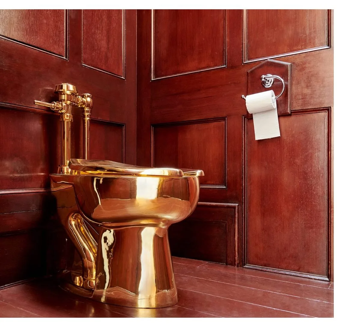 2019 දී Blenheim මාලිගයෙන් පළමු නිර්මාණය කිරීම සොරකම් කිරීමෙන් පසු දෙවන ඝන රන් වැසිකිළියක් වෙන්දේසි කිරීමට නියමිත වෙලා තිබෙනවා.