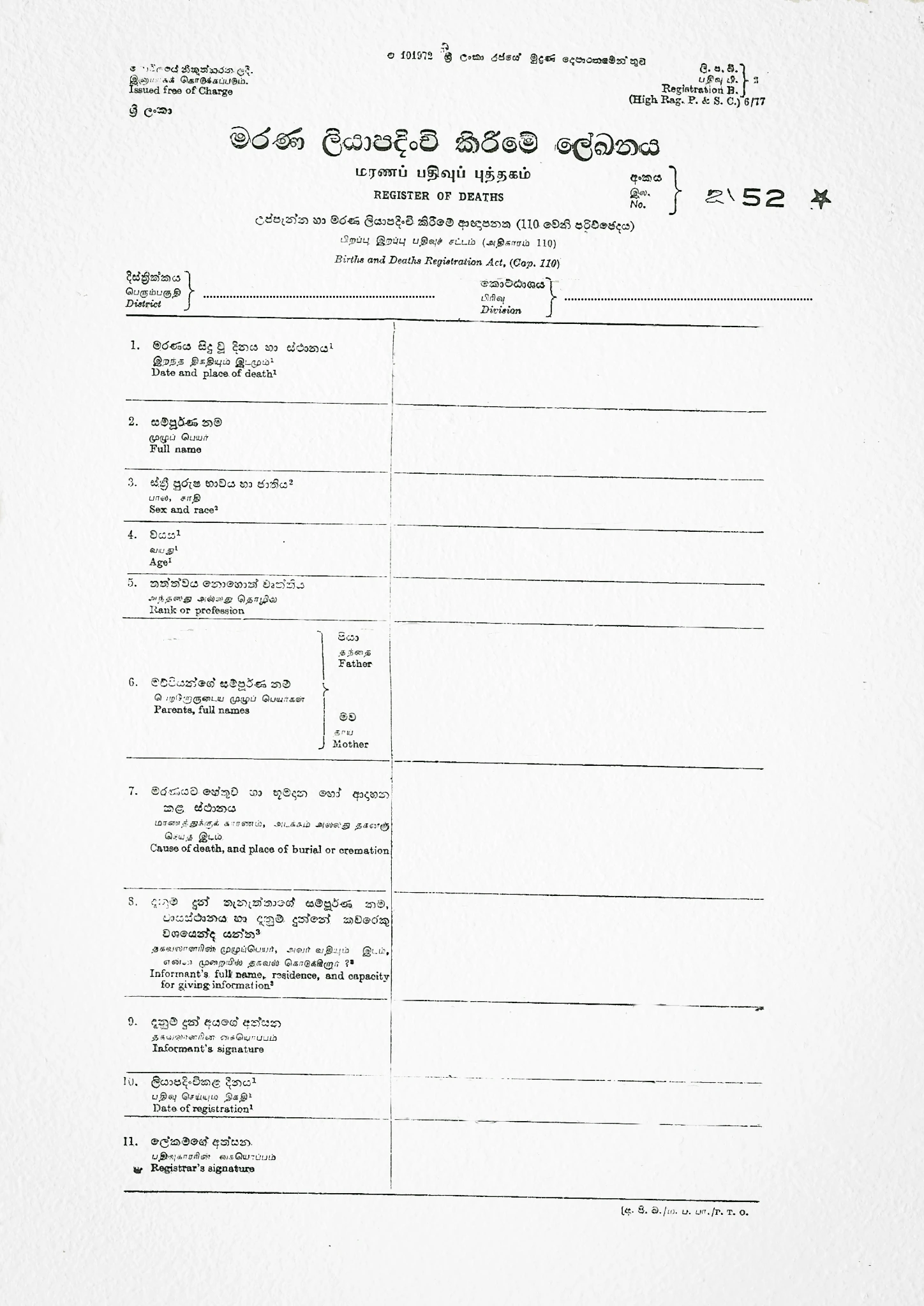1 . ලංකාවෙන් පිට සිටියත් මරණ සහතිකය ගන්න හරිම විදිහ