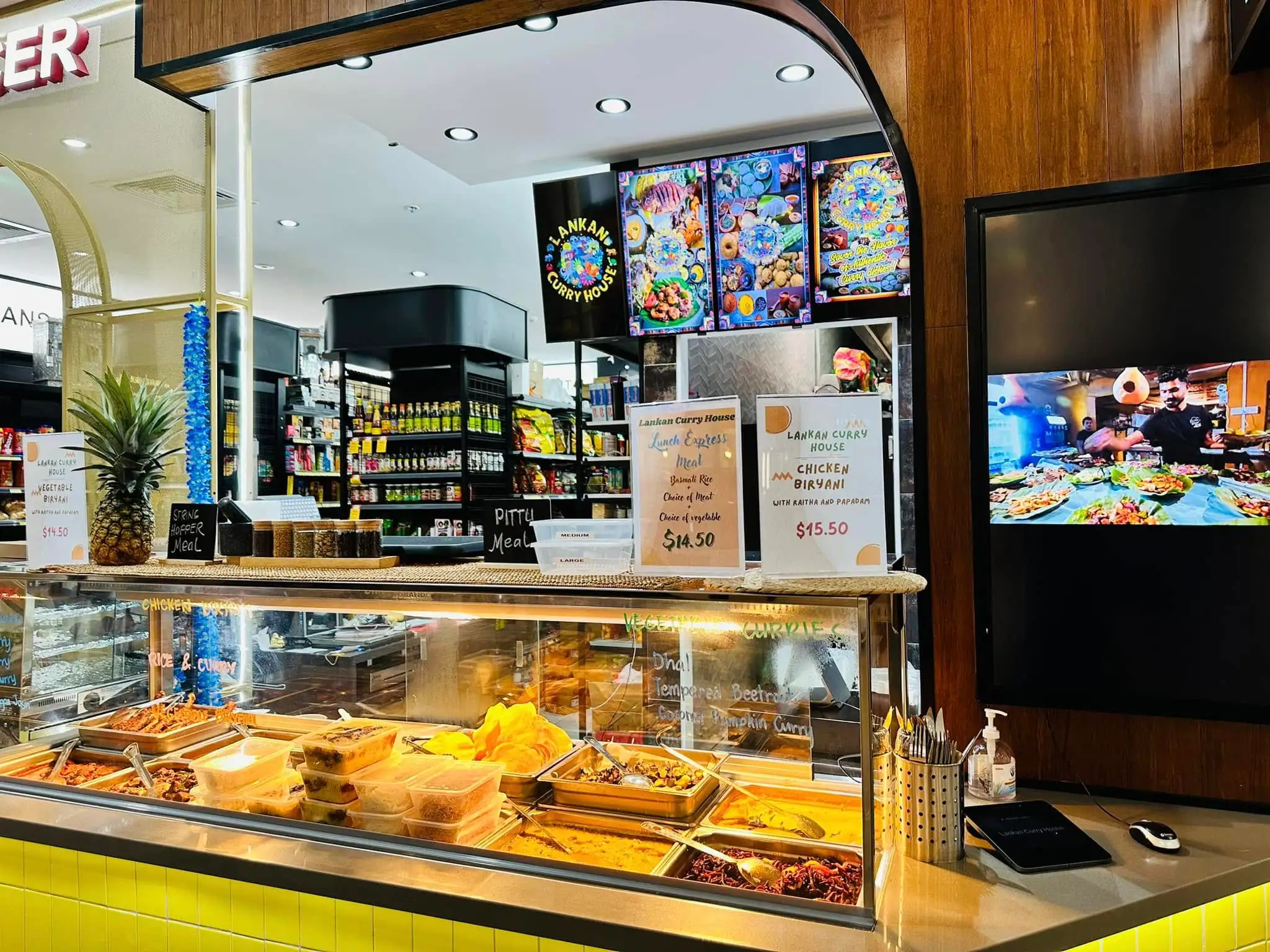 Vegetables Rolls, Beef Rolls, Chicken Rolls, Fish Rolls, Fish Curry Puff, Vegetables Samosas, Lankan Fish Cutlets Croquettes, Green Jackfruit and Banana Blossoms Cutlets Croquettes ආදී Entrees සහ Snacks ගොඩක් වගේම Lankan, Indian රසට කැමති අයට නැතුවම බැරි Raita සහ අඹ චට්නි සමග Vegetarian Biryani, Chicken Biryani, Baked Fish Boneless Biryani, Flaky fish in a flavorful biryani, Paneer Biryani, Lamb Biryani ඇතුළු බිරියානි වර්ග ගොඩකුත් තිබෙනවා.