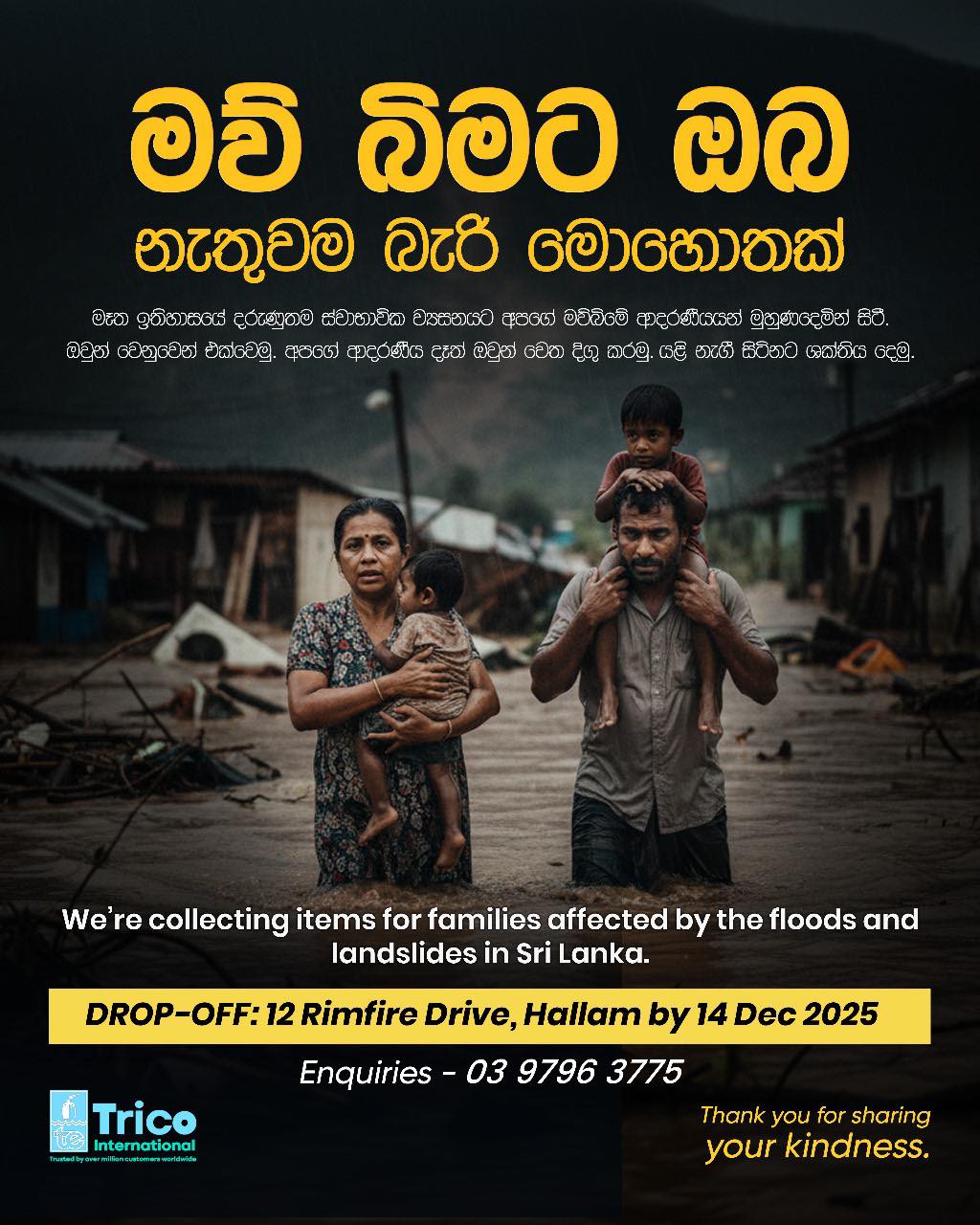 ශ්‍රී ලංකාවේ ආපදාවට පත්ව සිටින ජනතාව වෙනුවෙන් අත හිත දීමට ඕස්ට්‍රේලියාවේ සිට වගේම ලොව පුරා විවිධ රටවල් වලින් බොහෝ දෙනා ඉදිරිපත්ව සිටිනවා.