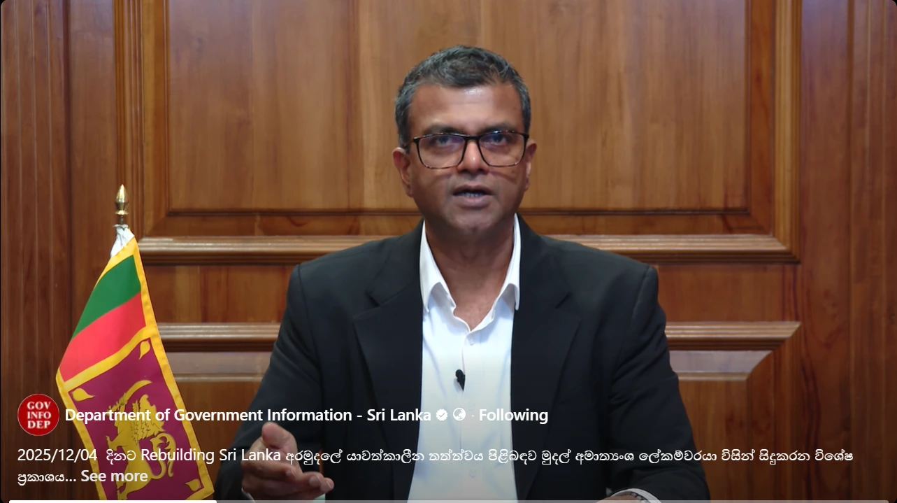මුදල්, ක්රමසම්පාදන සහ ආර්ථික සංවර්ධන අමාත්යාංශයේ ලේකම් ආචාර්ය හර්ෂණ සූරියප්පෙරුම මහතා නිවේදනයක් නිකුත් කරමින් 2025/12/04 දිනට Rebuilding Sri Lanka අරමුදලේ යාවත්කාලීන තත්ත්වය පිළිබඳව දැනුවත් කළා.